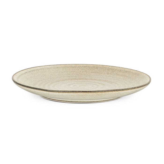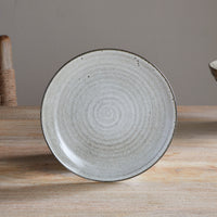 This side plate features a complex reactive glaze that presents unique tonal variations and a textured spiral pattern. Crafted to add warmth and dimension to daily meals, it complements the matching dinnerware and serveware, creating a sophisticated dining environment. Each item is shaped from locally sourced Portuguese clay, hand-poured into molds, and expertly finished. The layered reactive glaze creates tonal variations that reveal the maker’s craftsmanship.