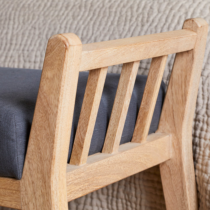 The Avanthi sleigh bench features a softly curved design and an intricately carved wooden frame, offering an elegance to any room. Upholstered in plush linen, it fuses traditional aesthetics with refined simplicity, perfect for entryways, living spaces, or bedroom benches. Crafted by hand from solid mango wood—harvested sustainably after the tree’s fruiting period—each bench reflects the skillful craftsmanship of artisans who meticulously sculpt and finish every contour.