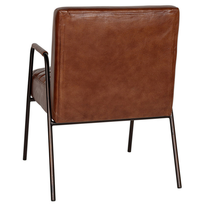 The Hadithi leather occasional chair elevates any room with its sleek profile and detailed craftsmanship. Featuring luxurious chocolate buffalo leather upholstery, it highlights a unique ribbed pattern and carefully wrapped leather arms. The chair’s simple, refined legs add to its minimalist design, combining visual elegance with a comfortable, supportive seat. Each piece is hand-upholstered using leather sourced as a by-product of buffalo farming by local herdsmen, supporting waste reduction and providing them with valuable additional income.