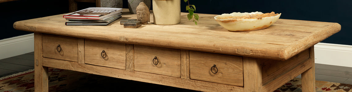 Elm wood has been popular with skilled furniture makers and craftsmen for centuries and it’s not hard to see why: with its attractive and wide-patterned grain, this stunning natural material is perfect for creating beautiful pieces such as coffee tables. At Kayu Home, our furniture collections include a wonderful selection of stunning elm furniture; from original antiques to superb quality reproductions, and contemporary designs. Whether you’re looking for a statement coffee table for your living room, or a compact side table to enhance a small space, our collections offer something to suit all homes and interiors.