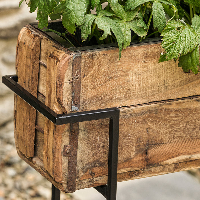 Each planter is handmade using a reclaimed wooden brick mould, paired with a hand-cut metal frame. Note that as each piece is produced from a salvaged mould, there will be variations in wood tone, markings and finish, making every piece unique.