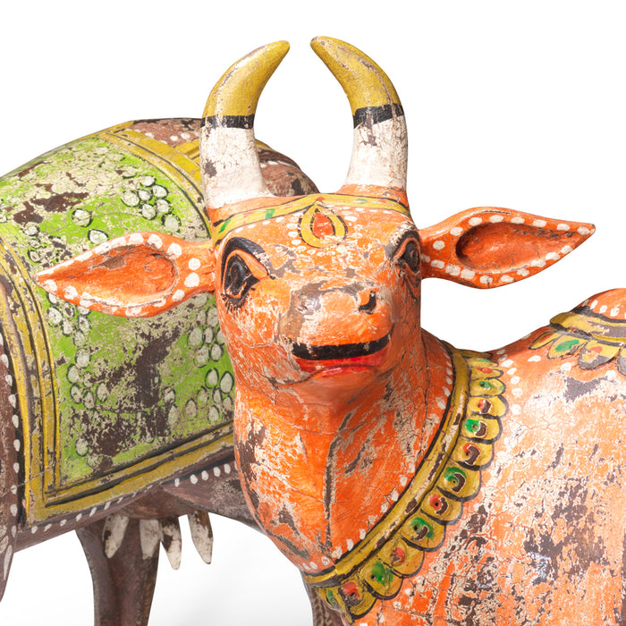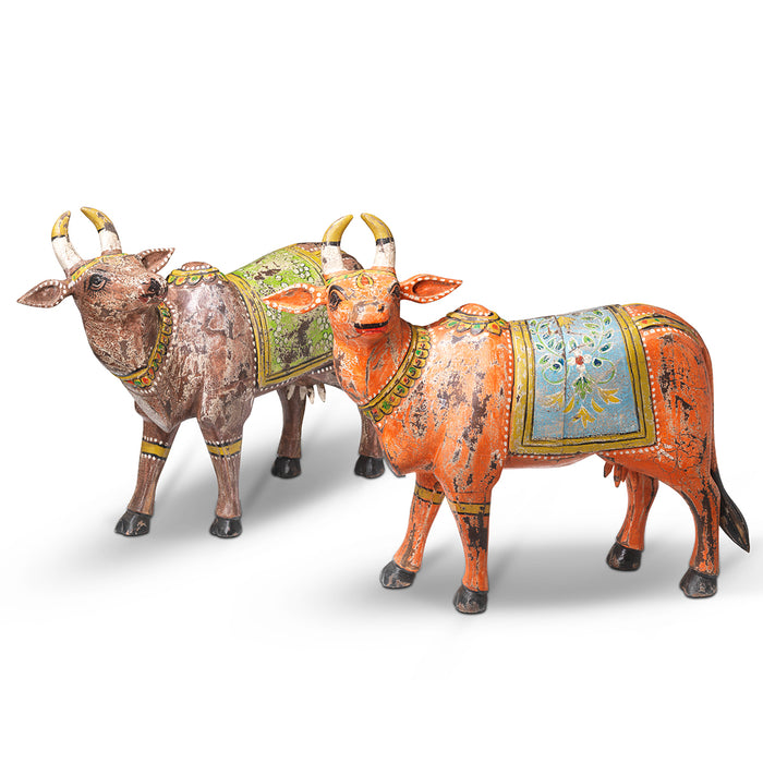 In Indian culture, the cow is a symbol of nourishment, abundance and prosperity, making these figures not only decorative but also meaningful. Whether displayed as a pair or individually, they bring warmth, colour and a sense of storytelling to a space.