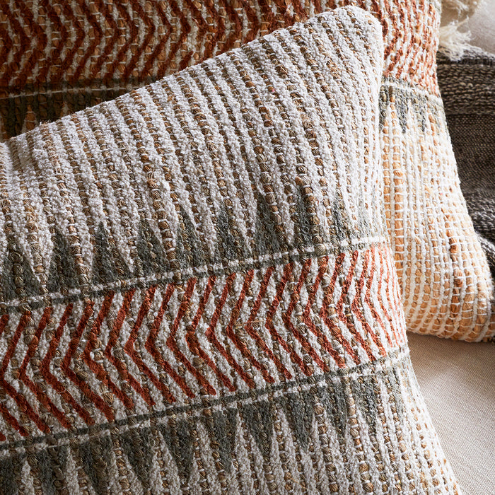 Add a tactile, colourful accent to your interior with the Zairya cushion cover. The natural jute material is hand-woven using traditional looms and the attractive, autumnal rust and moss green pattern block printed onto the fabric using hand-carved wood. Jute is one of our favourite materials, being recyclable and fully biodegradable, as well as being soft and highly durable.